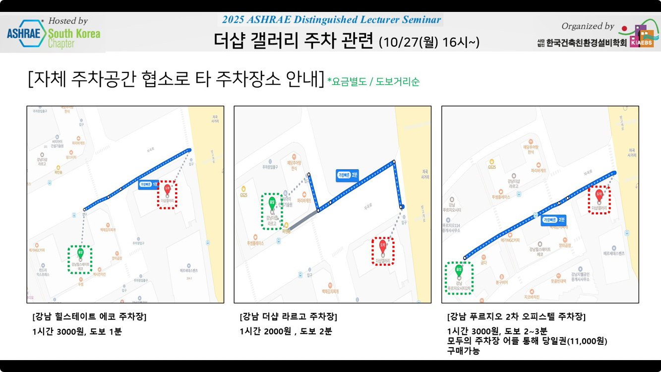 ASHRAE 한국지회에서 아래와 같이 DL 초청 세미나를 개최합니다.
