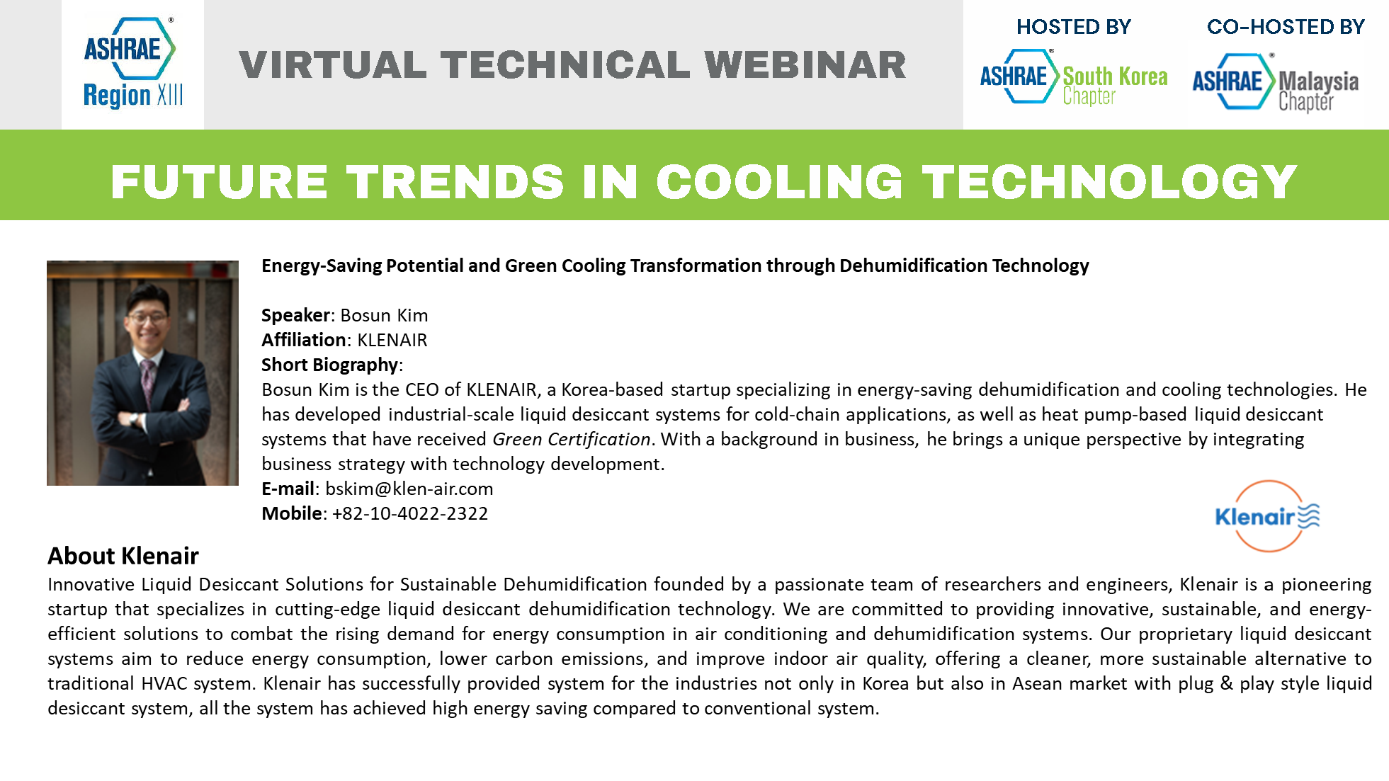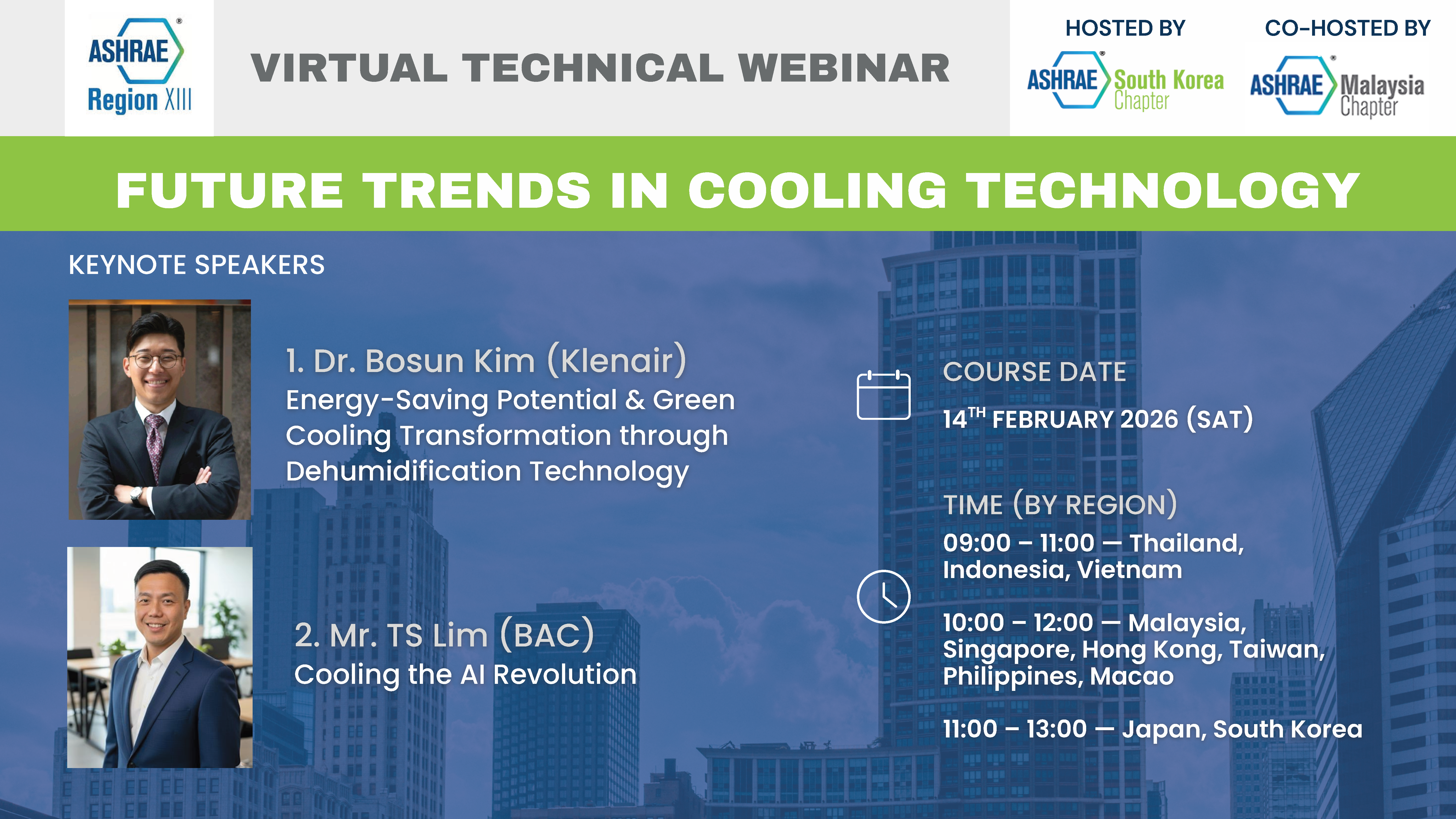 ASHRAE 한국 챕터는 말레이지아 챕터와 함께 Virtual Technical Webinar를 개최합니다.